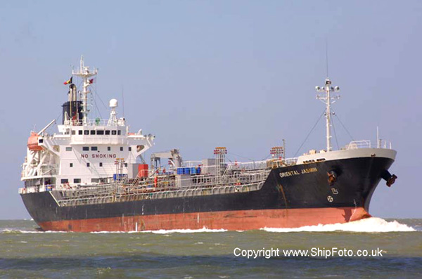 Inward bound in the Solent on 3rd May 2003, bound for berth 3, Fawley Oil Terminal, Southampton. Departed on