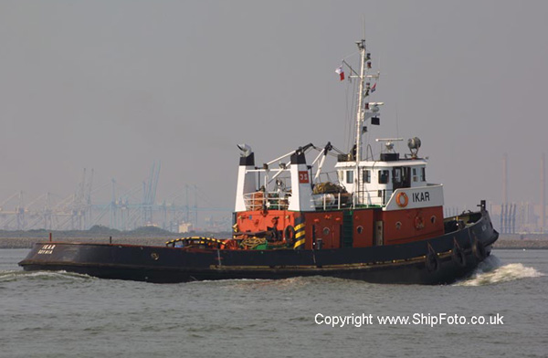 bound for Antwerp, towing barge UR 93 on 18th August 2004. Arriving from